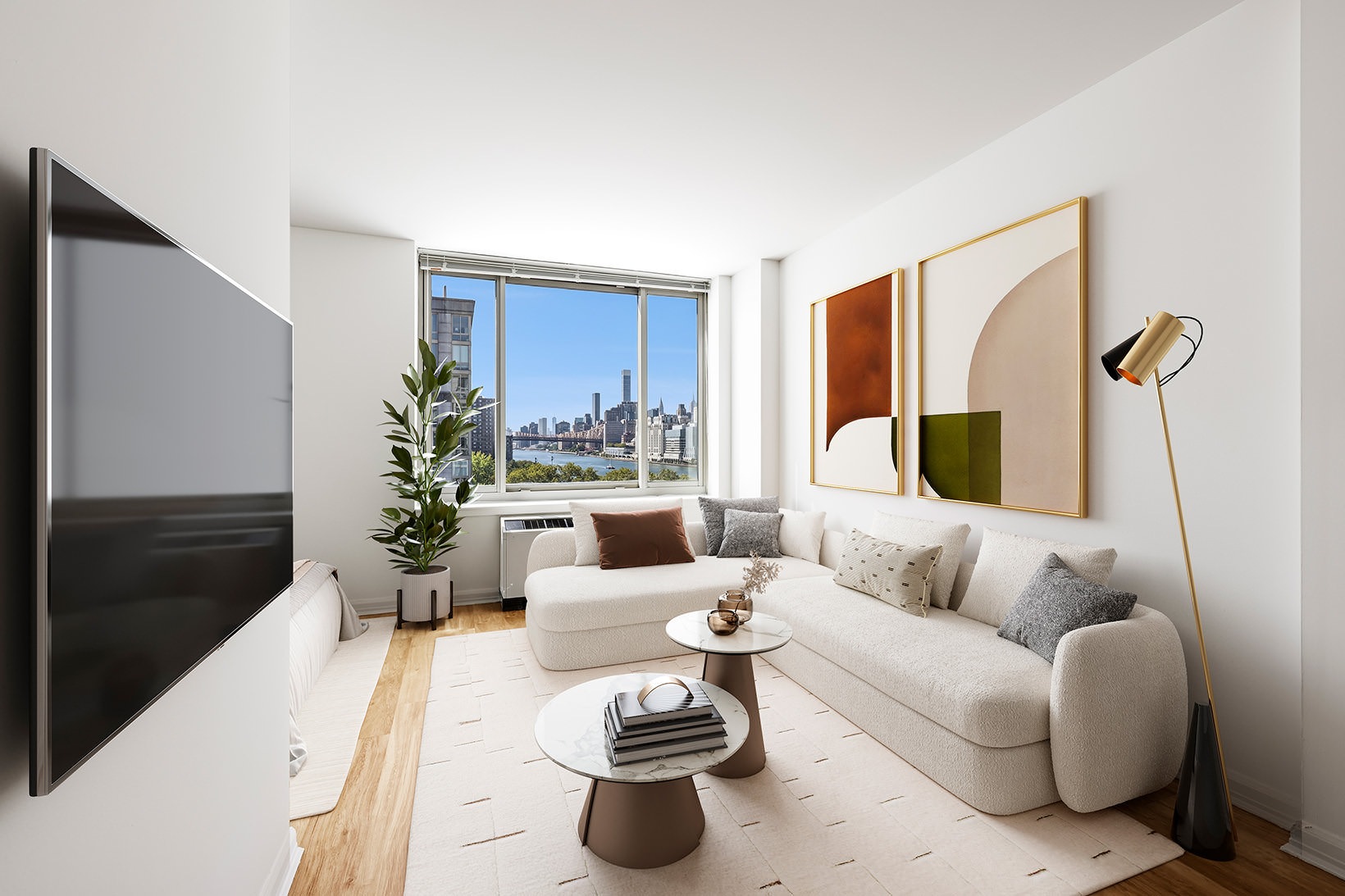 Sweeping panoramic views of the New York City skyline and the East River that will take your breath away.